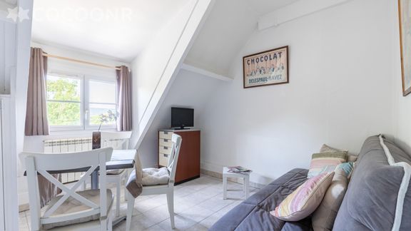 - Une pièce de vie de 20 m² avec smart TV, canapé lit et espace repas.