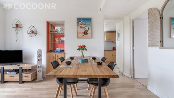 Situé à 250m de la plage, avec son séjour à la décoration soignée, sa cuisine équipée et ses 2 belles chambres, il dispose de tout le confort nécessaire pour que vous ne manquiez de rien : wifi, place de parking privée.