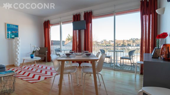 Bel emplacement à Bénodet avec une vue magnifique sur l'Odet. Logement fonctionnel mais nécessitant des améliorations (matelas, isolation phonique des chambres et aération).