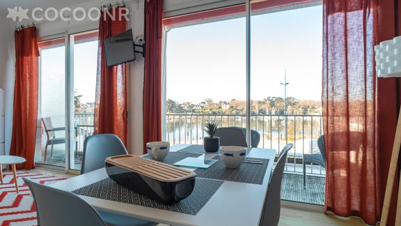 appartement très bien situé en bordure de l'Odet et très proche des plages. Il est spacieux et lumineux. A noter que l'appartement est situé au dessus d'un bar restaurant ce qui peut s'avérer bruyant en pleine saison. Il manque aussi un freezer au réfrigérateur.