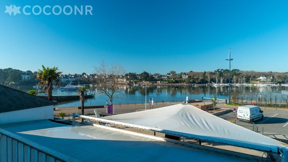 🙂 L'appartement est très bien situé, très proche de nombreux commerces (boulangerie, poissonnerie...), de plusieurs restaurants dont une crêperie et une pizzeria. Il est aussi très proche du port d'embarquement pour les îles Glénan ou Quimper (en remontant l'Odet). La pièce salle à manger/salon est fermée par une grande baie vitrée donnant accès à un grand balcon donnant sur l'odet et ses voiliers.