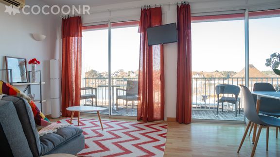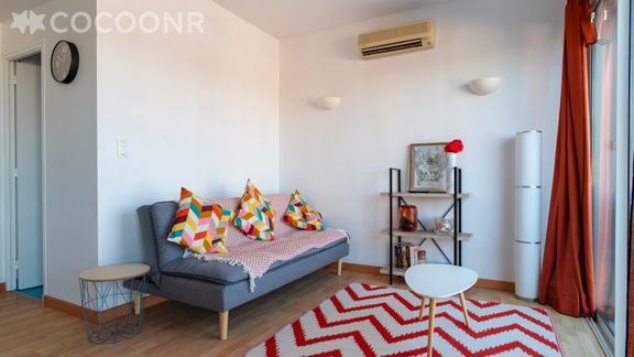 - Une pièce de vie 17m2 très lumineuse avec TV, Wifi inclus, canapé lit-double et coin repas pour 4 convives