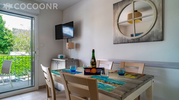 - Une pièce de vie de 19 m² avec TV, canapé-lit double et coin repas