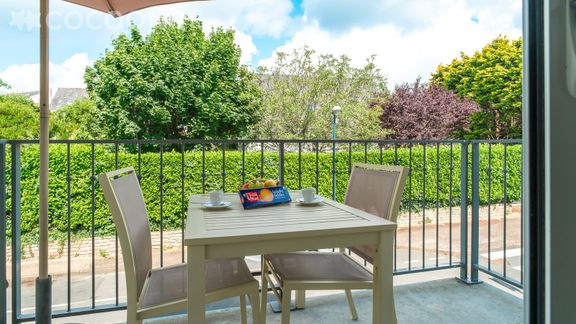 - Un balcon-terrasse de 5 m², orienté ouest, comprenant table, chaises et parasol pour profiter des beaux jours