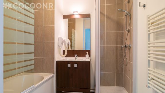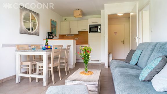 Nous vous proposons à la location, à Bénodet, ce charmant appartement à moins d’un kilomètre de la plage, avec piscine et sauna au sein de la résidence, d’une superficie de 33 m² et pouvant accueillir jusqu’à 4 voyageurs. Situé au 1er étage (avec ascenseur), il se compose d’une jolie pièce à vivre de 19 m², d'une cuisine équipée, d’une belle chambre et d'une salle de bain (avec douche et baignoire).
