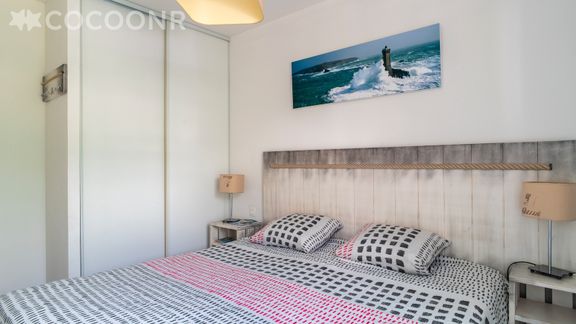 - Une chambre de 10 m² avec deux lits simples accolés pour former un lit queen-size (160x200) et rangement