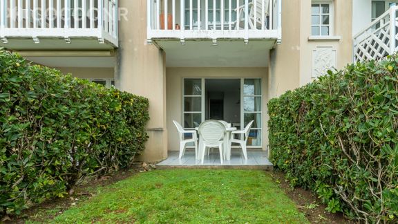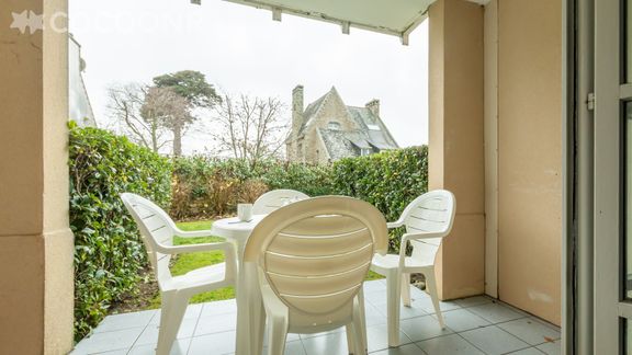 - Terrasse abritée et jardin privatif d'un total de 18 m², non clos avec mobilier de jardin (table, chaises et chaise longue)
