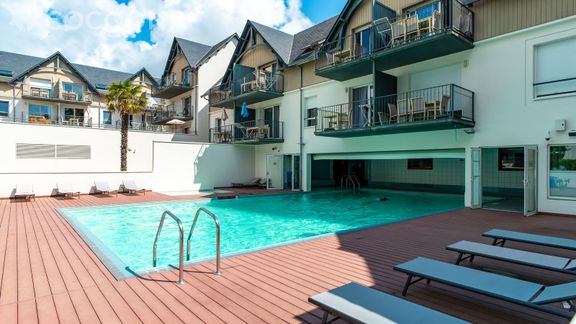 - Une piscine (chauffée, partagée) d'environ 90 m², avec espace remous/jacuzzi, sans surcoût, ouverte d'avril à octobre (dates d'ouverture non contractuelles susceptibles à modification par la résidence).