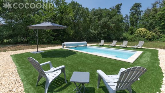 - Une piscine privée (7mx3.50m) non chauffée et sécurisée par un volet roulant électrique ouverte du mois de mai jusqu'au mois d'octobre. Les dates d'ouverture de la piscine sont non contractuelles.