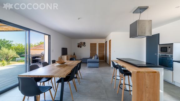 L'agence Cocoonr/Book&Pay vous propose à la location, sur la commune de Bessas, cette charmante maison climatisée de plain-pied avec piscine, d’une superficie de 130 m² et pouvant accueillir jusqu’à 8 voyageurs. Elle est composée d’une jolie pièce à vivre, d'une cuisine équipée, de trois belles chambres et de deux salles d'eau. Vous pourrez profiter d’un jardin d’environ 400 m² ! Wifi, draps et serviettes inclus, nous n'attendons plus que vous !
