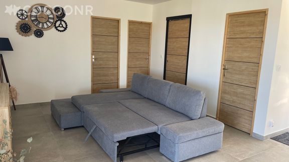 - Une pièce de vie de 44 m² avec canapé-lit double, TV, espace repas et accès terrasse
