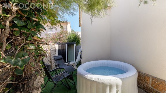 - Une terrasse de 8 m avec transats et jacuzzi (4 personnes) ouvert du 1er mai au 30 septembre