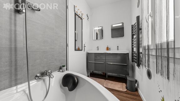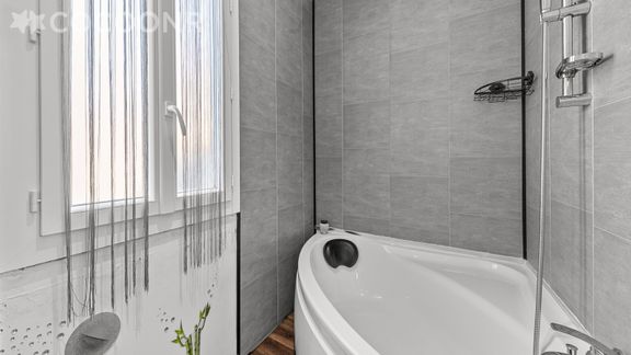 - Une salle de bain avec douche et baignoire