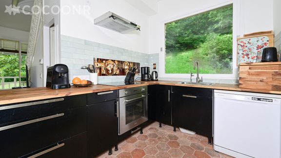- Une cuisine équipée avec notamment : bouilloire électrique, four, four à micro-ondes, grille-pain, lave-vaisselle, plaques de cuisson...
