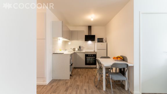 - Une cuisine équipée avec notamment : bouilloire électrique, four, four à micro-ondes, grille-pain, plaques de cuisson...