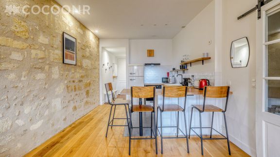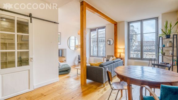 Ce superbe appartement de 55 m², rénové en 2020 avec goût et attention, est situé dans un immeuble en pierre du début du 19 ème siècle, en plein cœur du quartier St Pierre, centre historique de Bordeaux. L’emplacement est idéal, à 100 mètres de la rue Ste Catherine et à 100 mètres de la Place de la Bourse, pour un séjour inoubliable à Bordeaux.