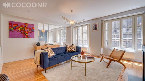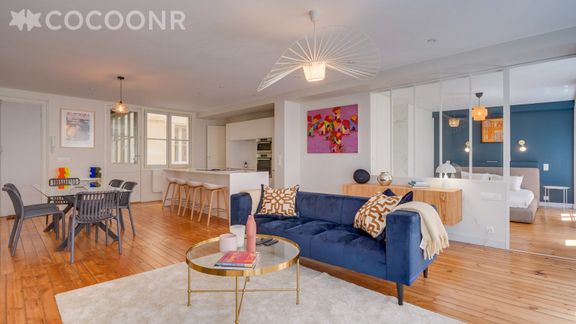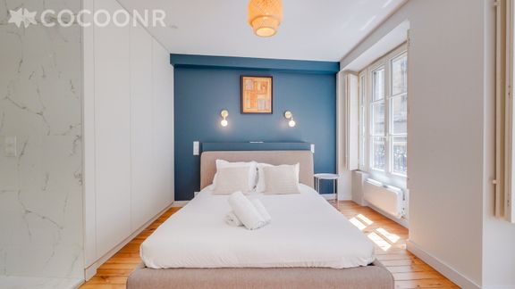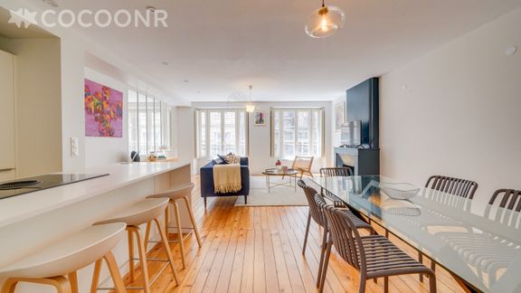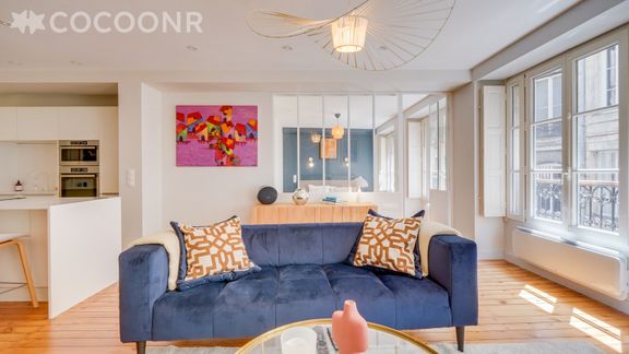 L'agence Cocoonr vous propose à la location un magnifique appartement très bien situé, très agréable et spacieux. Situé au 1er étage (sans ascenseur) d’un immeuble en pierre. Le Kite vous séduira par son charme et sa décoration. Il vous offre tout le confort, mélangeant modernité et charme de l’ancien. À quelques pas de la Place Pey Berland, de la rue Sainte-Catherine et des Quais, en plein cœur du quartier St-Pierre, des commerces et des restaurants, le Kite vous offre tout le confort pour un séjour d’exception à Bordeaux. Grâce à ses trois grandes chambres, il peut accueillir très confortablement six voyageurs.