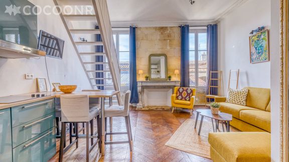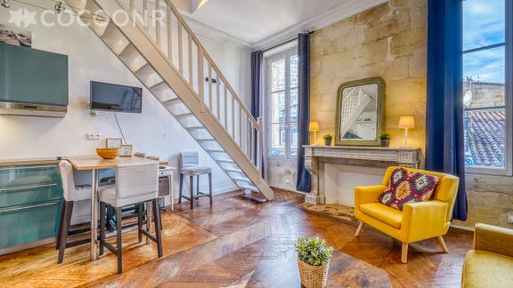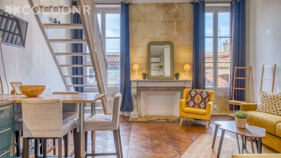 Passez un superbe séjour, dans cet appartement très agréable en duplex, idéalement situé, en plein cœur de Bordeaux, à deux pas du quartier Saint Pierre, des Quais et la rue Saint Catherine et entièrement climatisé.