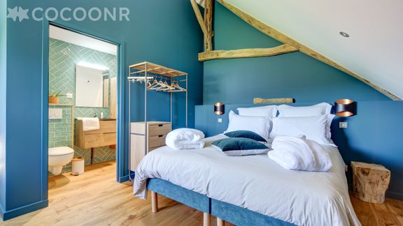 - Chambre 1 - Rouge-Gorge : Un lit double (140x190) avec salle d'eau avec douche et WC attenant ainsi qu'une terrasse de 7,5 m²