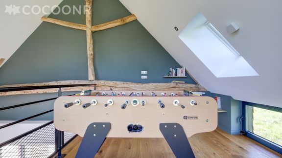 - Une mezzanine avec baby-foot, jeux de société et livres