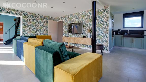 - Une pièce de vie de 40 m² avec TV, un coin salon et un coin repas