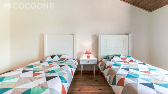 - Chambre 3 orientée nord de 25 m² aménagée avec un lit queen-size (160 cm x 200 cm) et un lit superposé.