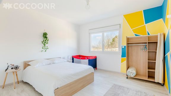 - Chambre 3 : un lit double (140×190) avec un espace de travail