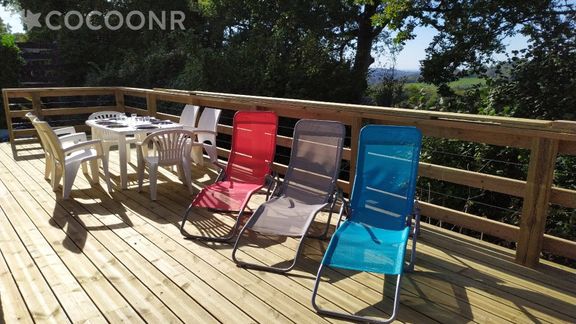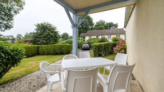 - Grand jardin privatif de 273 m² qui entoure la maison. La parcelle principale devant la maison est exposée nord-ouest, et est aménagée avec 2 tables à manger (l'une pour 6 personnes, l'autre pour 4 personnes), parasol, plancha.