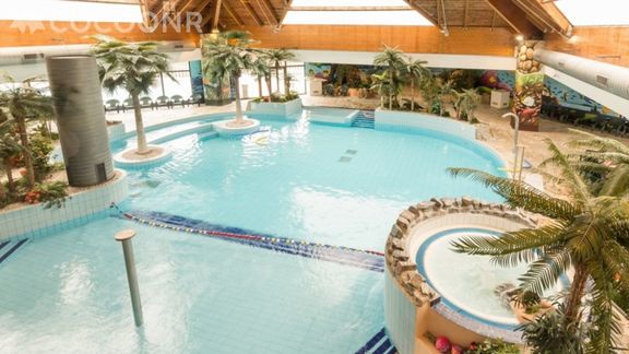 - 3 piscines intérieures et extérieures, chauffées, surveillées par des maîtres nageurs. L'accès aux espaces aquatiques est gratuit pour les locataires. Il y en a une à l'intérieur fermé, avec une pataugeoire, une autre appelée lagon, qui est à l'extérieur, et la 3 ème, plus grande, profondeur de 2 mètres. Les piscines sont accessibles toute l'année, excepté du 24 novembre au 20 décembre. L'ouverture des piscines est soumise aux décisions de la résidence, pour plus d'informations, veuillez prendre contact avec le village Pierre & Vacances Normandy Garden.