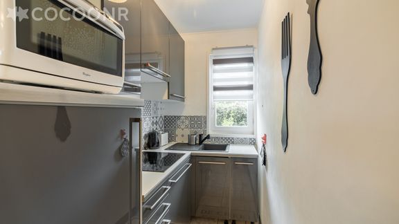 - Cuisine séparée et entièrement équipée : lave-vaisselle, four, plaques de cuisson, réfrigérateur, four multifonction, bouilloire, cafetière Senseo, grille-pain, vaisselle et couverts...