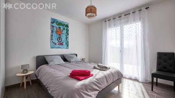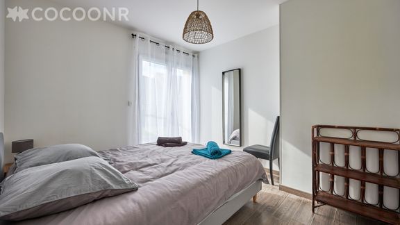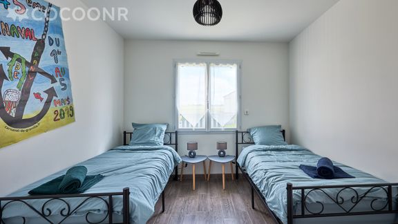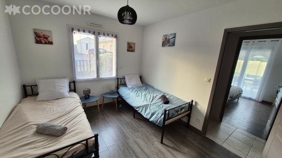 - Chambre 2 : un lit queen-size (160×200). Draps et serviettes inclus.