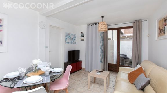 - Une pièce de vie de 25 m² avec canapé-lit double, TV, coin repas