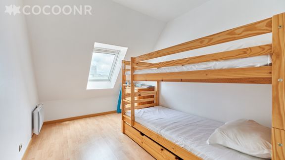 - Chambre 2 : avec 3 couchages (1 lit superposé : 2 lits simples et 1 lit gigogne)