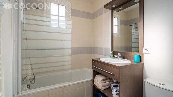 Le logement est impeccable et pratique dans une belle résidence privée avec piscine et jeux pour les enfants, au calme autour d’un golf. L’arrivée se fait très facilement et l’agence est très réactive en cas de besoin. Je recommande. Un petit paradis pour les vacances.