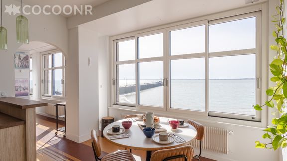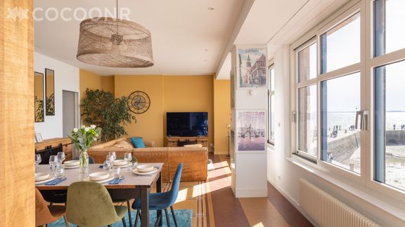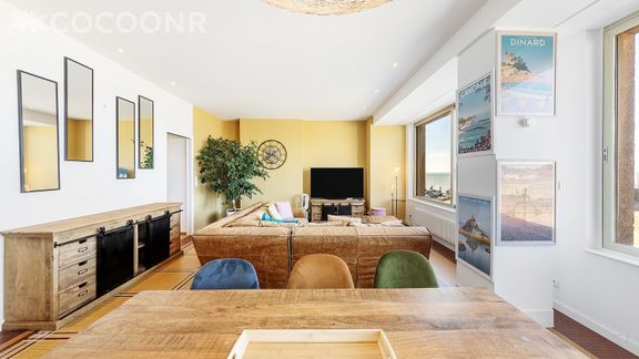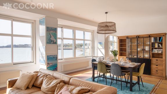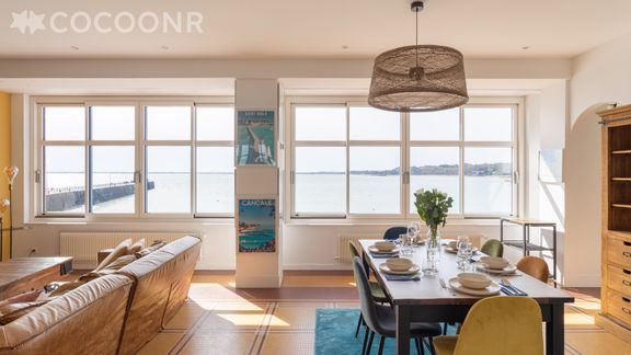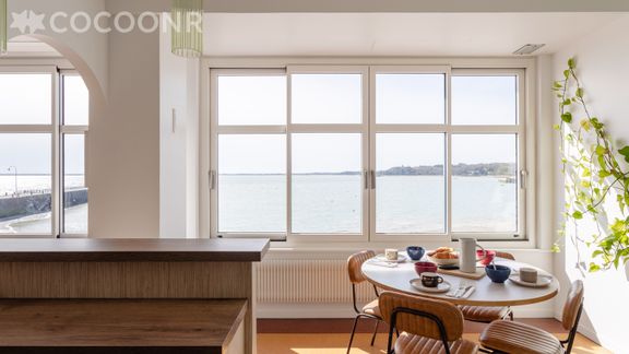 L'agence Cocoonr vous propose à la location, à Cancale, ce bel appartement avec vue mer. Il se situe à proximité immédiate de la plage. Situé au 1er étage (sans ascenseur), d'une surface de 110 m² , il peut accueillir jusqu’à 6 voyageurs et dispose d'une place de parking privative. Il comprend une grande pièce de vie avec vue sur le port, une cuisine toute équipée, une buanderie, trois belles chambres, deux salles d'eau avec wc, Wi-Fi (fibre optique), draps et serviettes inclus, nous n’attendons plus que vous !