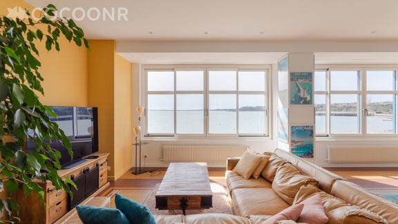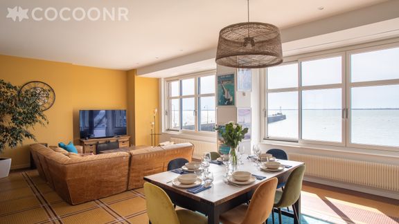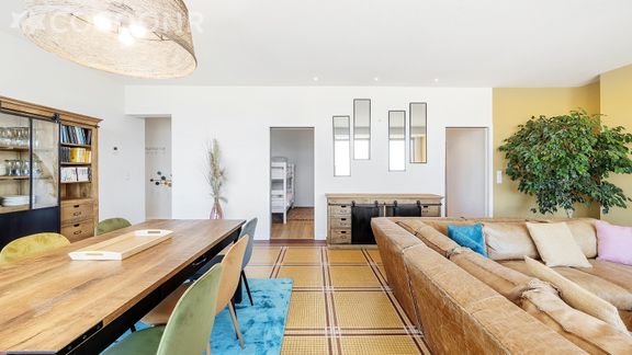 - Une très grande pièce de vie de 50 m² avec salon, salle à marger. Cette pièce est baignée de lumière grâce à ses grandes baies vitrées vue mer.
