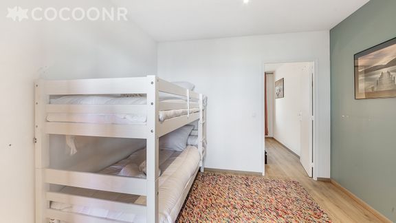 - Chambre 2 avec deux lits superposés (90x200). Cette chambre est en enfilade avec la chambre 3 (on traverse la chambre 2 pour aller dans la chambre 3.