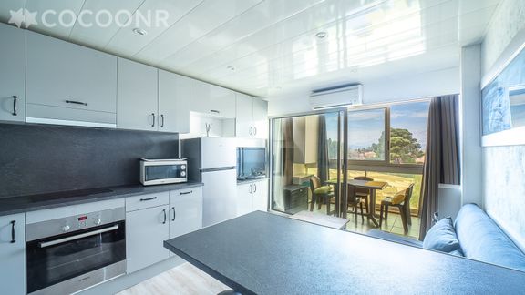 Nous vous proposons à la location, sur la commune de Canet-en-Roussillon, ce charmant studio climatisé avec vue montagne, avec un accès direct à la plage en moins de 5mn à pied, en traversant la promenade par le passage piéton. Le logement est d’une superficie de 28 m² et pouvant accueillir jusqu’à 4 voyageurs. Situé au 2e étage (avec ascenseur), il se compose d’une jolie pièce à vivre, d'une cuisine équipée et d'une salle d'eau.