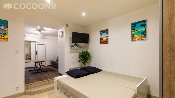L'agence Cocoonr/Book&Pay propose à la location, sur la commune de Cannes, ce charmant T1 bis (2 étoiles) climatisé à moins d’un kilomètre de la plage, d’une superficie de 58 m² et pouvant accueillir jusqu’à 3 voyageurs. Situé au rez-de-chaussée, il se compose d’une jolie pièce à vivre de 58 m², d'une cuisine équipée, d’un coin nuit, d'une salle d'eau et vous pourrez profiter d’un petit jardin d’environ 8 m². Wifi, draps et serviettes inclus, nous n’attendons plus que vous !