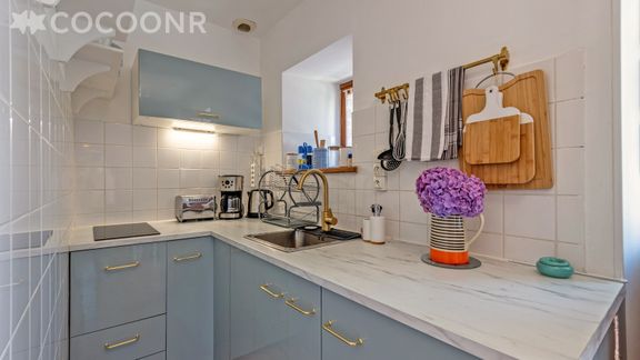 - Une cuisine équipée avec notamment : bouilloire électrique, grille-pain, plaques de cuisson...