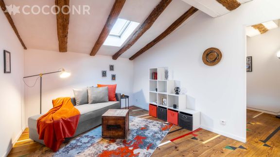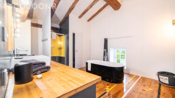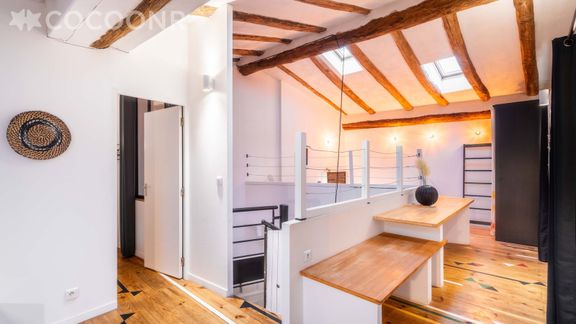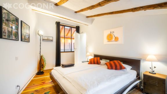 Situé au 1er étage (sans ascenseur), il se compose d'une jolie pièce à vivre de 65 m² (avec cheminée), cuisine équipée, de deux belles chambres, une salle de bain (avec douche et baignoire) et vous pourrez profiter d'une cour privée d'environ 95 m². Wifi (fibre optique), draps et serviettes inclus, nous n'attendons plus que vous !
