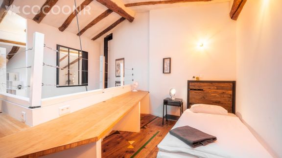 - Un canapé-lit et un lit simple dans l'espace mezzanine