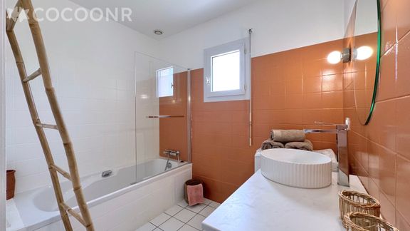 - Salle de bain avec baignoire et toilettes séparées