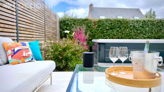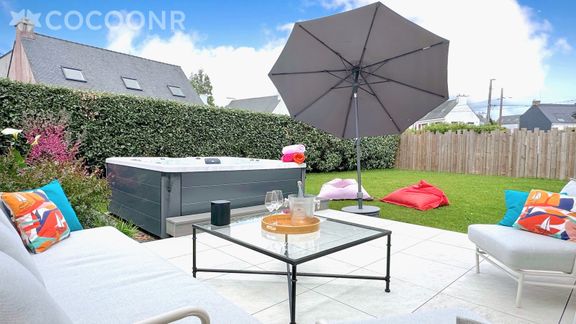 - Vous bénéficierez également d'une seconde terrasse à l'arrière de la maison (sans vis à vis également) qui vous accueillera pour de parfaits moments de convivialité lors d'un apéritif ensoleillé ou d’un moment de détente et de bien être dans le spa extérieur de 5 personnes nouvellement installé (mis à disposition sur la période estivale). Bain bouillonnant, jet de massage et relaxation agrémenteront votre séjour à KERLAOUEN.