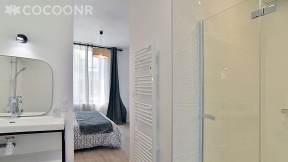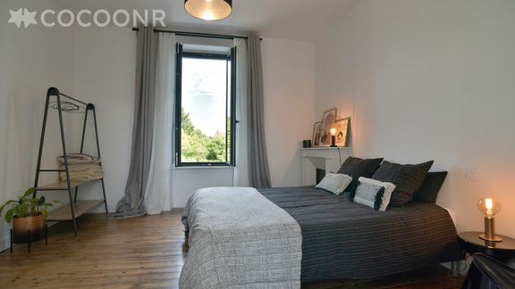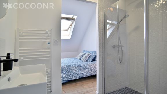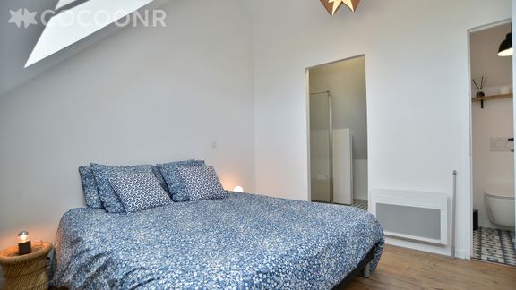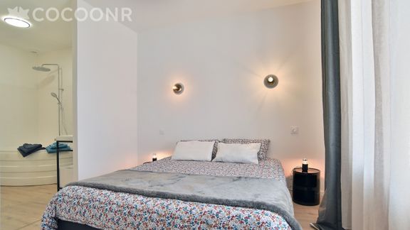 - Chambre 2 : avec un lit queen-size (160×200), une salle d'eau attenante avec douche