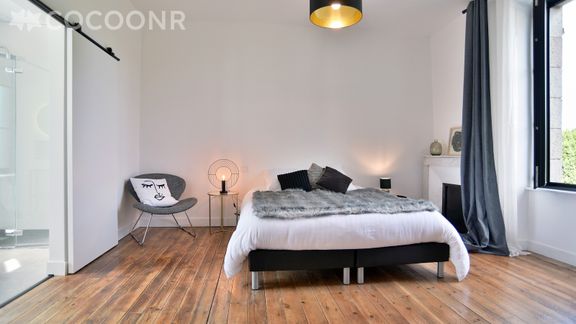 - Chambre 1 : avec un lit queen-size (160×200), , WC attenants et une salle de bain attenante avec baignoire et douche