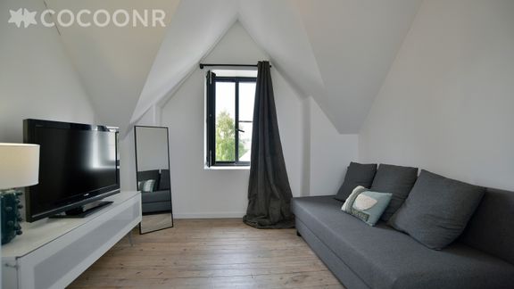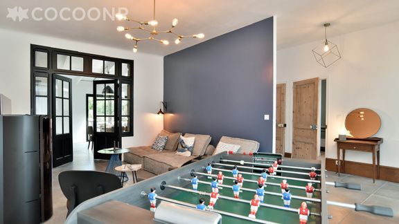 - Une pièce de vie de 30 m² et un salon avec TV, baby-foot, canapé...