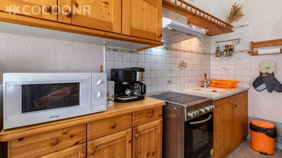 - Une cuisine fonctionnelle et entièrement équipée : réfrigérateur, four, plaques à induction, micro-ondes, grille-pain, bouilloire, cafetière à filtre..