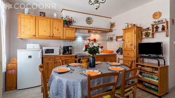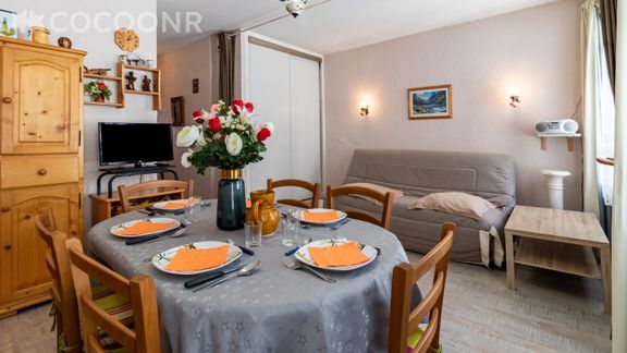 Pouvant accueillir jusqu'à 6 personnes, le logement dispose d'une pièce de vie avec un coin salon, un espace repas, une cuisine équipée, une chambre, un espace chambre ainsi qu'une salle d'eau et d'un casier à ski.