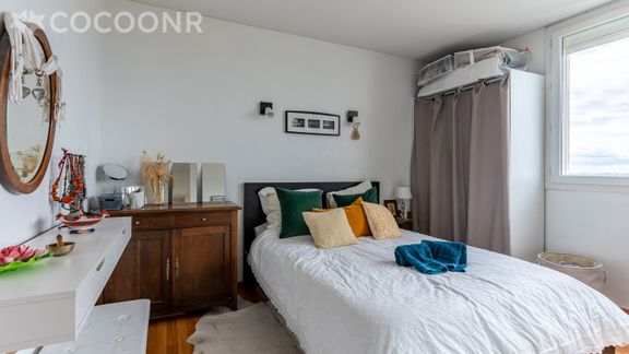 L'agence Cocoonr/Book&Pay vous propose à la location, à Cenon, ce charmant appartement relaxant, avec une décoration bohème chic, d’une superficie de 60 m² et pouvant accueillir jusqu’à 4 voyageurs. Situé au 11e étage (avec ascenseur), il se compose d’une jolie pièce à vivre de 30 m², d'une cuisine équipée, d’une belle chambre, d'un espace bureau et d'une salle de bain. Les draps et les serviettes sont inclus. Nous n’attendons plus que vous !